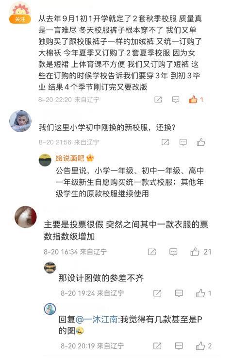 据悉,今年以来,江西、辽宁、黑龙江、广东等地进行全市校服统一款式的征集工作。还有网友认为校服应该全国统一,免费发放。