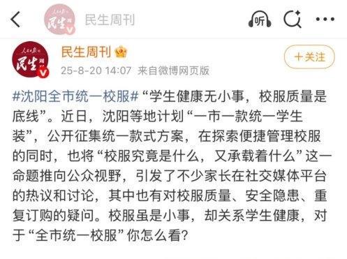 目前,“全市统一还能叫校服吗” 的讨论仍在持续,不同观点的碰撞仍在发酵。无论立场如何,网友的核心诉求高度一致:校服的设计与管理,终究要围绕 “学生” 展开,既要守住质量安全的底线,也别丢了育人的温度。
