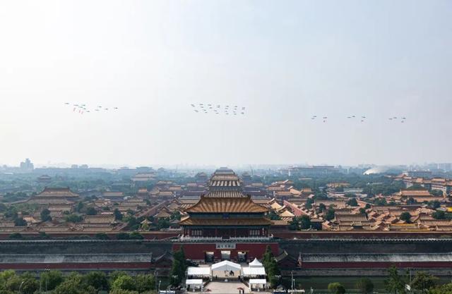 这是加受油机梯队通过天安门广场。新华社记者 孟涛 摄