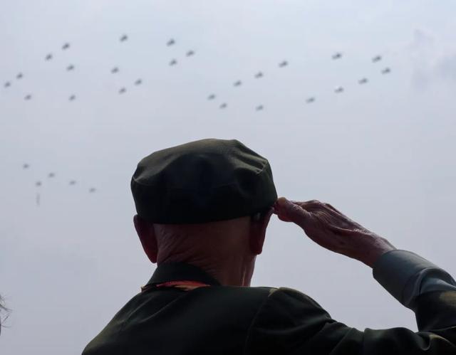 这是抗战老战士在天安门城楼上敬礼。新华社记者 才扬 摄