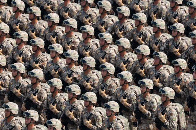 这是中国人民解放军仪仗方队接受检阅。新华社记者 刘续 摄