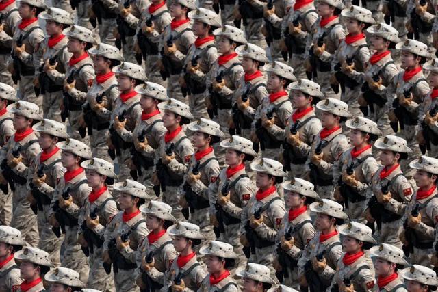 这是民兵方队接受检阅。新华社记者 毛思倩 摄