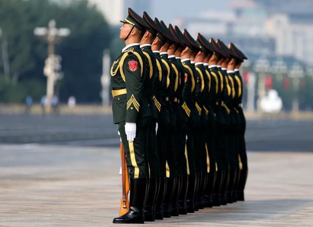 这是国旗护卫队在天安门广场列队。新华社记者费茂华摄