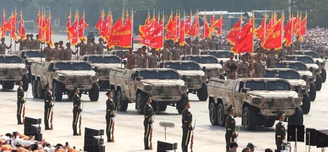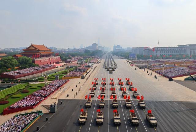这是战旗方队和装备方队接受检阅。新华社记者 刘续 摄