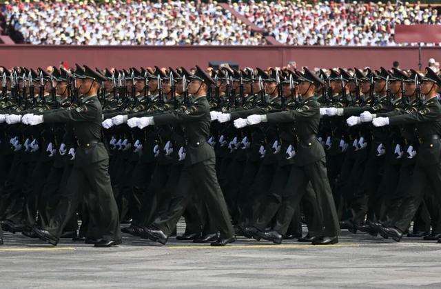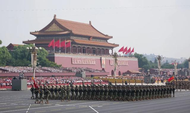这是中国人民解放军仪仗方队走过天安门广场。新华社记者 杨磊 摄