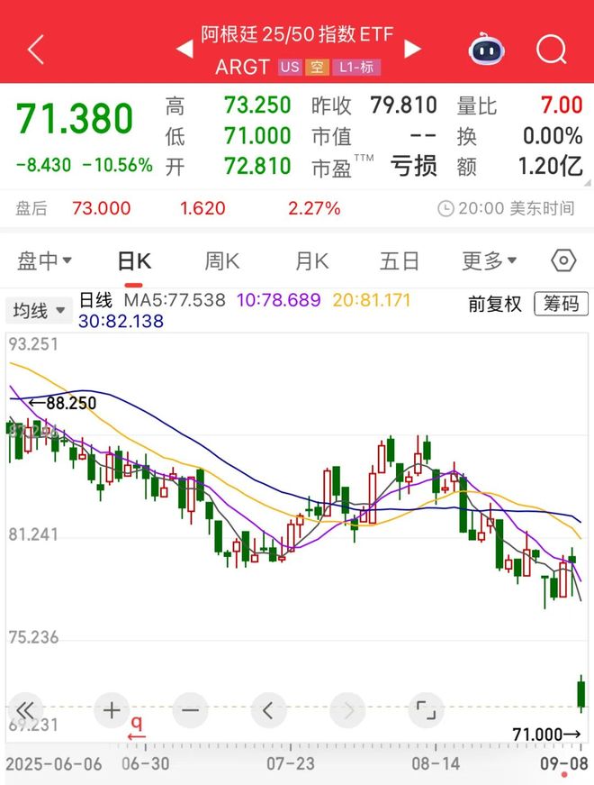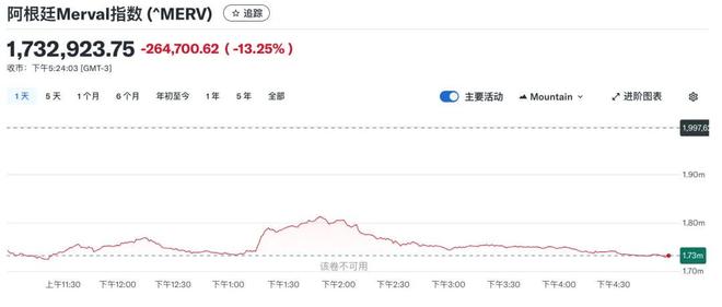 截至收盘,阿根廷Merval指数跌13.25%,创下自2020年新冠疫情以来最大日内跌幅;全球最大阿根廷ETF Global X MSCI Argentina暴跌10.56%;阿根廷比索对美元汇率暴跌近5%,至1436比索兑1美元。