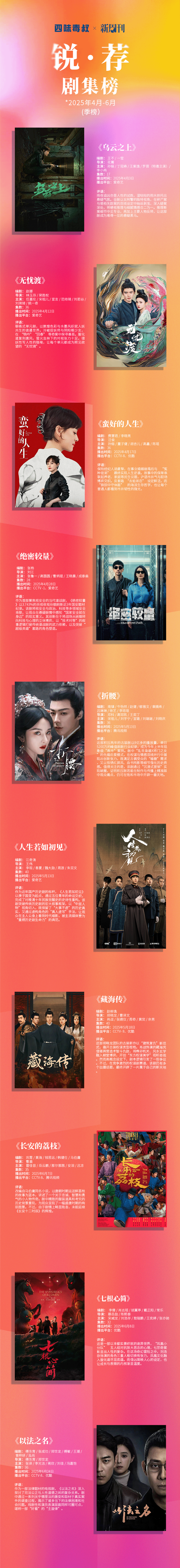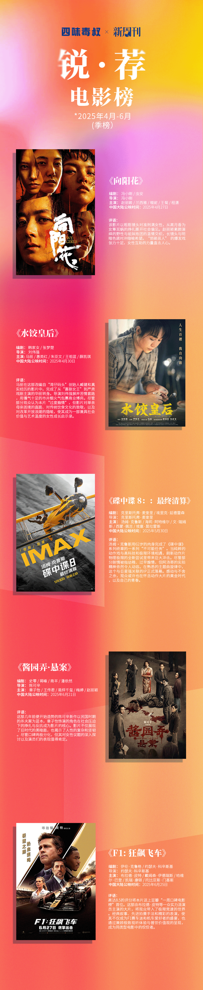 《新周刊》联手影视文化垂直行业自媒体品牌“四味毒叔”推出的“锐・荐剧集榜”“锐・荐电影榜” 第二季榜单(2025年4—6月)如约而至。