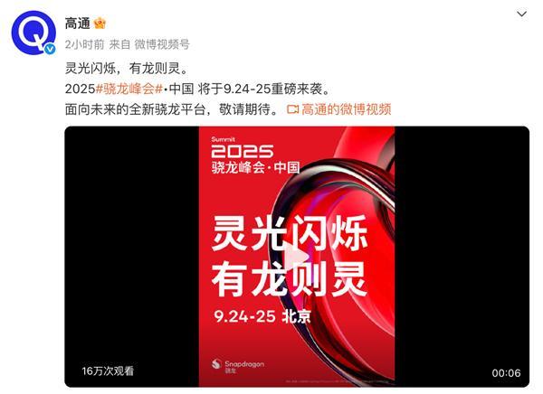 高通已经宣布2025骁龙峰会·中国将于9月24日至25日举办,这是一次面向中国市场的专属峰会,核心内容是发布年度旗舰平台骁龙8 Elite Gen5。