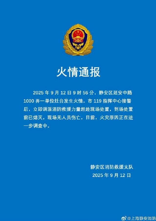刚刚,@上海静安消防 发布火情通报:
