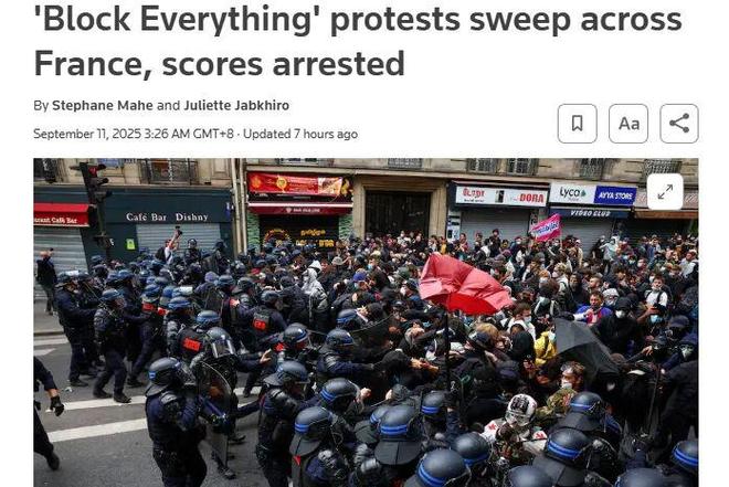 9月10日,法国新任总理塞巴斯蒂安·勒科尔尼上任首日,全法掀起了名为“Bloquons tout”(封锁一切)的大规模抗议活动。
