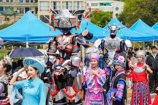 南宁大学生过“三月三”,机甲来了也得走“最炫民族风”。(图/视觉中国)