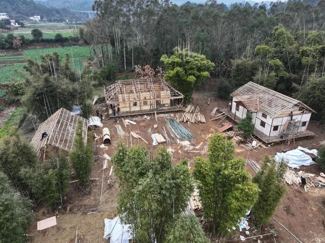 摄制组根据史料考据,重新搭建的校舍建筑群。(图/受访者提供)