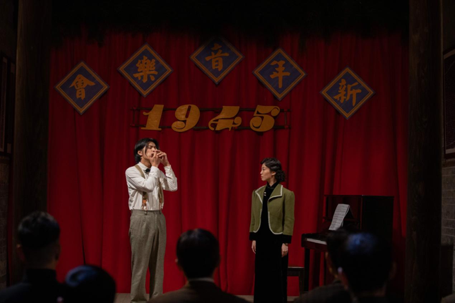 仁科扮演黄友棣在校园新年晚会上演奏。(图/受访者提供)