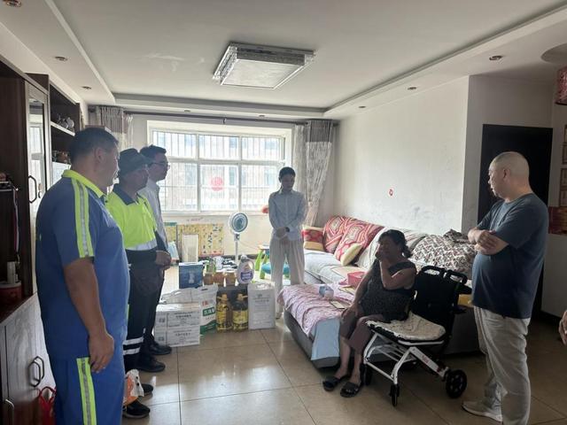 日前,在郑州公用集团城市环卫板块西四环项目分部的作业路段上,郑州公用集团公用环卫党支部五心阵地党小组代表寻到了正在清扫作业一线的困难职工郑彩风,为她送上了牛奶、面粉、大米、黄桃罐头、纸巾、洗洁精等生活物资,郑彩风接过这份“亲人般的牵挂”,幸福之情溢于言表。