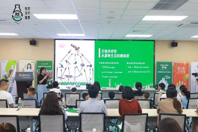 工厂探访之后,参与的亲子家庭参与了“宝贝重塑科普公益课堂”,就健康饮水、塑料再生和生物多样性等议题开展了形式丰富的课堂互动。