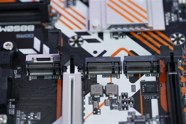 存储接口堪称豪华,3个M.2插槽覆盖PCIe 5.0×4、PCIe 4.0×4及PCIe 4.0×2规格,配合4个SATA III接口,轻松满足多设备存储需求。