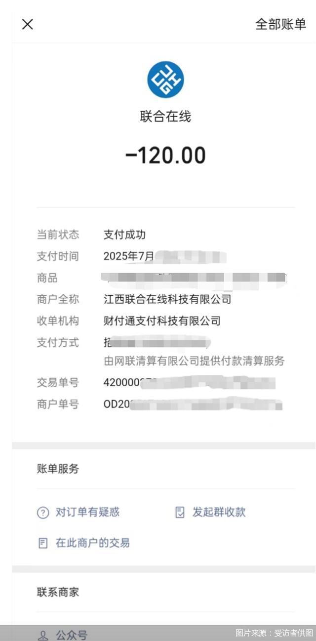 由于登机时间紧迫,奚洁未能追问上述工作人员所属公司。直到事后她查询保险保单时才发现,投保人竟然写着一个陌生企业——江西联合在线科技,而这120元保费也支付给了这家公司。相关保险承保方为某头部财险公司。