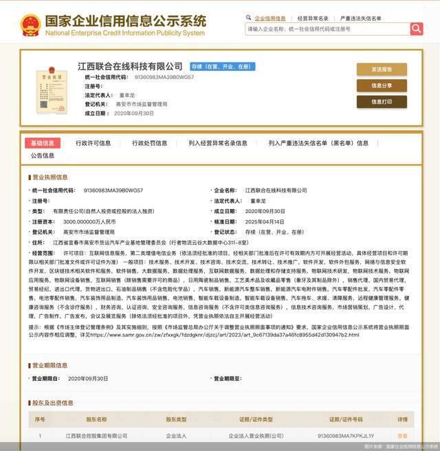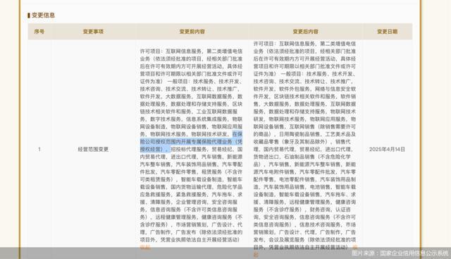 然而,在金融监管总局官网上,记者并未查询到江西联合在线科技具备任何保险中介资质的记录。此外,国家企业信用信息公示系统显示,今年4月后,“在保险公司授权范围内开展专属保险代理业务(凭授权经营)”这一业务已不在江西联合在线科技的经营范围中。